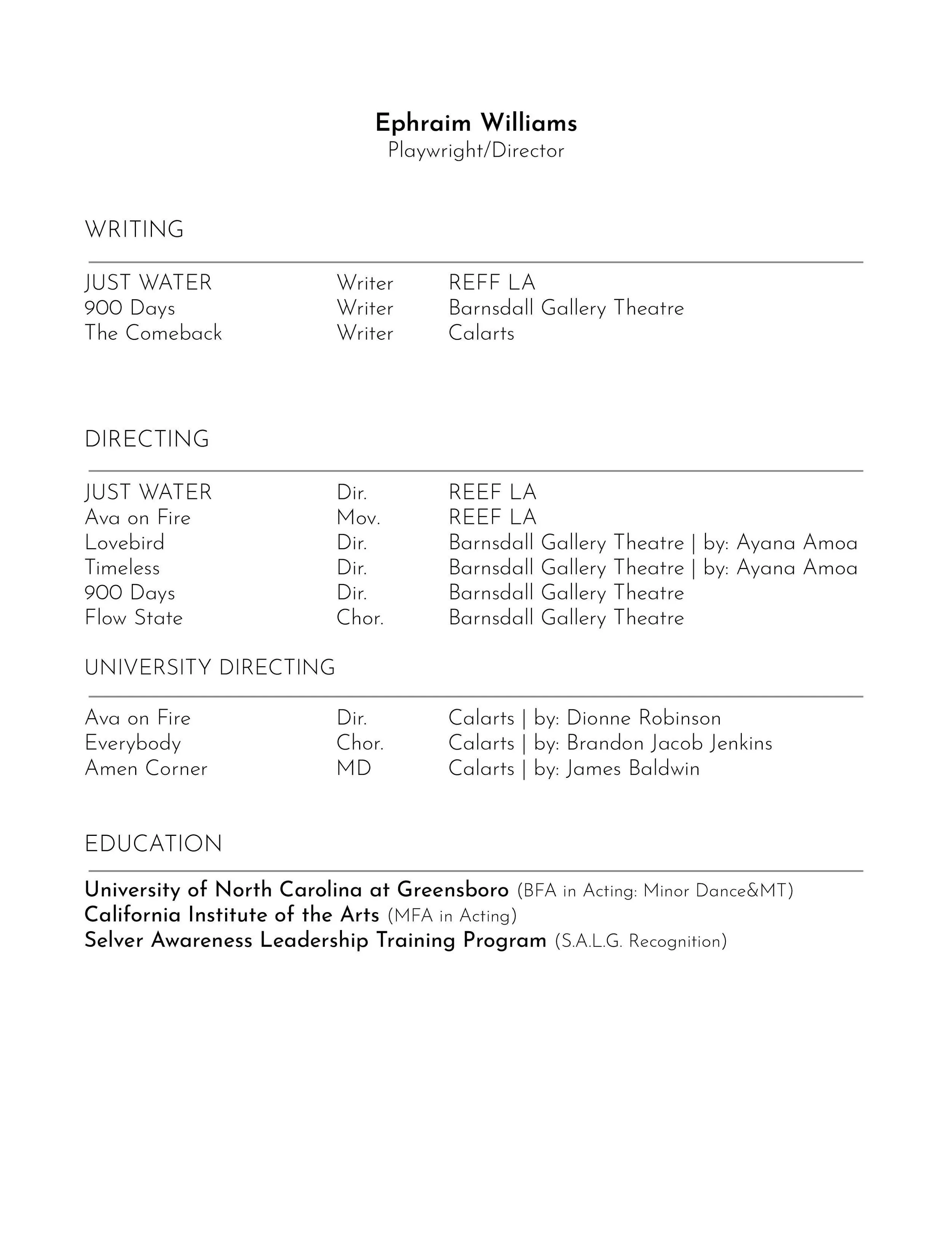 Resumes AEA Acting Download Acting Playwright/Directing Download Playwrighting/Directing Teaching Download Teaching